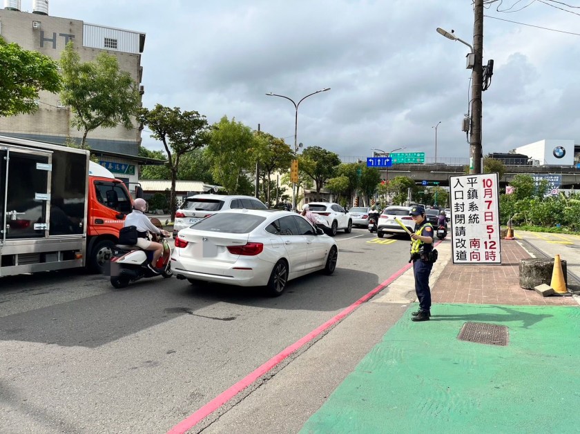 平鎮警分局表示,112年國慶連續假期為10月7日至10日共計4天,國道一號平鎮系統交流道南下匝道封閉期間,建議用路人可使用替代道路來規劃行程,大溪往觀音方向可行駛台66線快速道路後,接台61線西濱快速道路南下或於台66線中豐路交流道下接南平路、轉陸橋南路接臺1線(延平路)南下,而往大溪方向請行駛台66線快速道路後,轉臺3線南下行駛,避免塞於車陣中。
