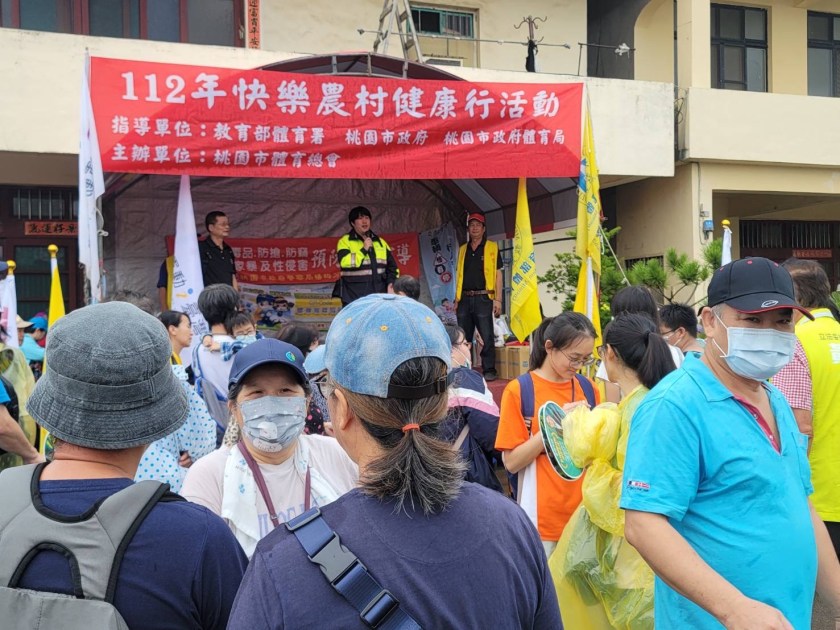 桃園市警局楊梅分局大坡派出所為落實推動社區警政再出發工作,於10月7日上午至新屋區後庄發展協會擧辦健走活動會場犯罪預防宣導,針對里民最關心的轄區治安、交通、打詐、婦幼安全等重點警政工作加強宣導。