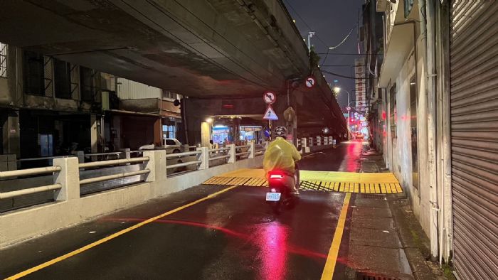 張新福說,「組合式減速平台」與先前以瀝青鋪設所設置減速平台設計相同,皆參考內政部營建署發布之「都市人本交通道路規劃設計手冊」設置,材質屬橡膠材質,一整塊黃色的方形區域,採平台設計緩升緩降,從側面看類似梯形,最高處距離地面約有10公分,透過鮮明的黃色冷塑塗層搭配箭頭,提醒用路人提早注意平台,視覺衝擊加上路感,都能讓車輛達到減速效果。