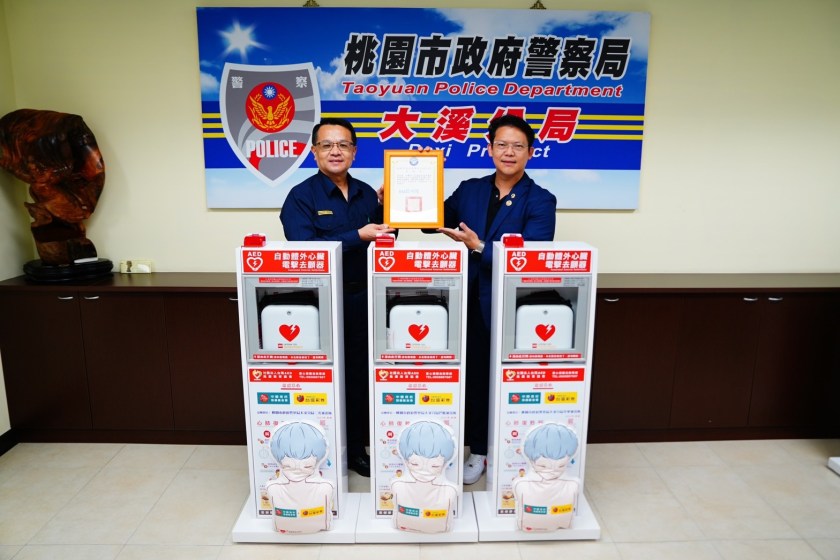 感謝協會協助媒合善心人士捐贈AED設備,大溪分局將分別設置於三光、光華、巴陵及長興派出所,提升偏鄉緊急救護品質,因應緊急狀況能立即於黃金時間進行搶救,增加緊急救護患者的存活率。