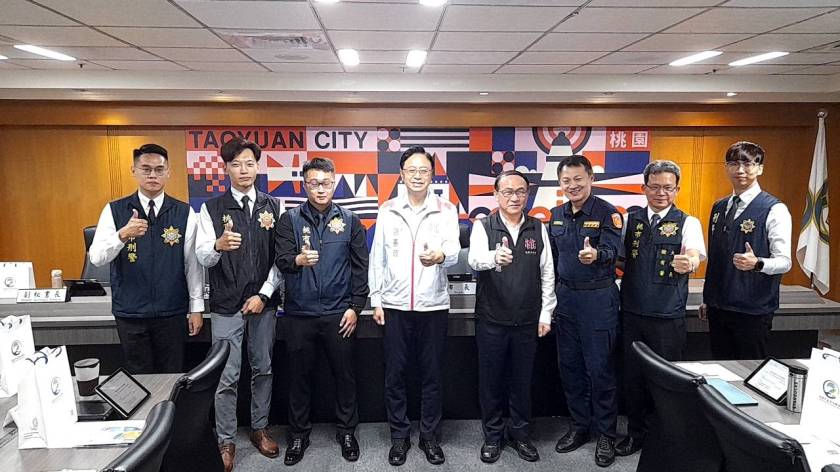 該局獲獎後旋即於112年11月1日桃園市政府第444次市政會議中,由局長吳坤旭率領獲獎代表交通警察大隊大隊長林鼎泰及刑事警察大隊大隊長謝有筆、個人組獲獎人員刑事警察大隊偵查佐張光昕、蘆竹分局警員徐佳宏、楊梅分局偵查佐張育竣、龍潭分局警員陳驛隴等6人將獎座,呈獻給市長。