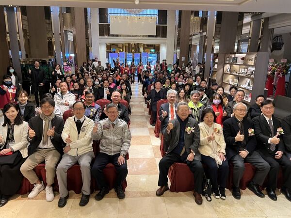 桃園市王副市長(右六)、敏盛集團總裁楊敏盛伉儷(右七)出席敏盛智醫城開幕剪綵儀式與貴賓合影。