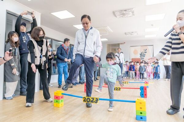張市長逐層參觀幼兒園建築及設施,並與小朋友們一同進行音樂律動、體能闖關、藝術創作等活動,互動熱絡溫馨。張市長說,因應幼兒就學需求,市府持續努力增加布建公共化幼兒園,希望讓所有家長們順利找到合適的托育機構,未來婦幼發展局成立後,也會與教育局攜手合作,提供市民朋友更好的托嬰與托幼服務。