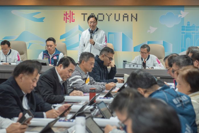 張市長提及,本次事件市府團隊跨局處應變,各相關單位通力合作,包含由捷工局緊急進行坑洞填補;養工處協調各管線單位確認管線分佈及保護;水務局巡視管線箱涵;交通局透過路側資訊可變標誌(CMS),提醒用路人提前改道;警察局於現場進行交通管制;此外,經發局也協調台電及欣桃公司確認地下電纜管線與瓦斯管線不受影響。