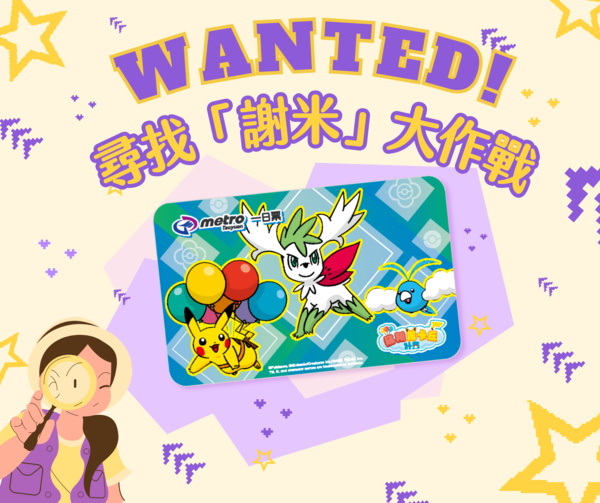 在「尋找謝米大作戰」活動期間,桃園大眾捷運(股)公司設計兩項任務;任務一:擁有桃園大眾捷運(股)公司銷售的桃捷一日票中,具有「謝米」圖樣者,可上桃園捷運官網尋找「謝米」大作戰活動登錄專區登錄相關資料,就有機會參加抽獎獲得「寶可夢一日套票」,此任務的「寶可夢一日套票」有35套哦。