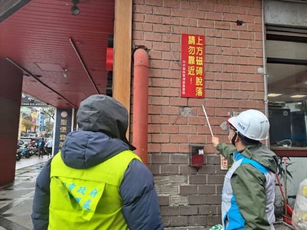 入冬以來最強寒流來襲,桃園市政府建築管理處提醒,氣溫冷熱變化大,建築物外牆磁磚因熱漲冷縮,容易掉落,請各社區管理委員會留意,建物外牆、裝飾面如有剝落情形,務必立刻圍設警示,加做防護措施並盡速修復完成,建築管理處22日也主動派員會同專業技師針對桃園大樓磁磚掉落案件加強巡查,提升用路人及車輛通行安全,另大樓管理委員會也可以向建管處了解修繕補助。