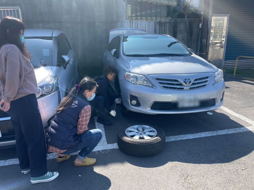 平鎮警分局龍岡派出所所長簡建忠表示,龍岡地區有著豐富的滇緬文化及特色美食,家住楊梅的鄭姓婦人,特別趁著年節期間,帶著遠道而來的友人到此參觀不同的人文風景,但沒想到要準備離開去搭乘高鐵時,車輛輪胎竟莫名損壞,導致車輛無法動彈,楊婦與友人雖自行嘗試更換備胎,但兩人費了九牛二虎之力,卻仍無法順利排除故障。