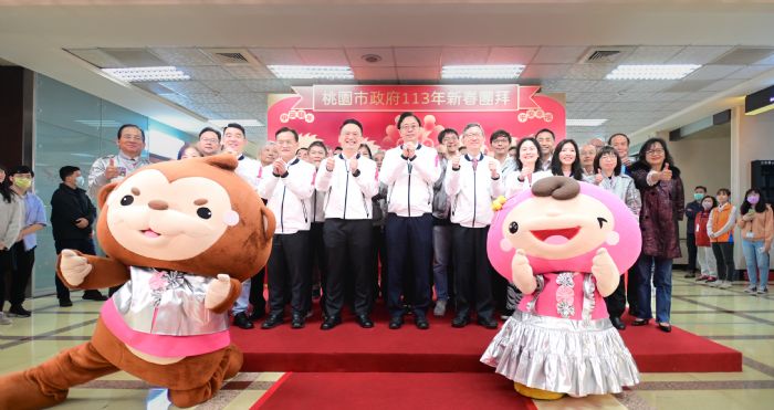 桃園市長張善政15日上午於市府大廳,出席「桃園市政府113年新春團拜」。張市長表示,市府過去一年以「好通勤、好工作、好就學、好生活」為目標,在「交通、產業、建設、永續、智慧、觀光文化」等六個面向,推動超過150項大小政策,感謝大家過去一年來合作無間,共同努力實現桃園宜居城市的願景,在經過春節期間的養精蓄銳後,期許同仁們新的一年繼續協力向前,一同為桃園打拚,打造更友善宜居的桃園。