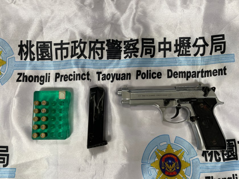 中壢分局普仁派出所17日晚間9點在環北路與中豐北路口執行取締酒駕勤務時,一名男子竟然在車內放著一把手槍和子彈,被警方當場逮捕,依法偵辦。