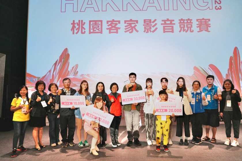 「2023 HAKKAING桃園客家影音競賽」頒獎典禮,18日假桃園統領威秀影城舉辦,由桃園市政府客家事務局饒佳汶副局長揭曉6組獲獎短影音作品並進行頒獎。本次競賽共計57件作品參賽,最終由「客家過年親戚歌」奪得特優賞3萬元,「汶水老街-茶壽文化介紹」、「客板印象」分別拿下優秀賞2萬元,「正宗客家人」、「台南女子嫁來客家莊,是什麼樣的體驗」、「亻厓做得」則分別獲得佳作賞1萬元。