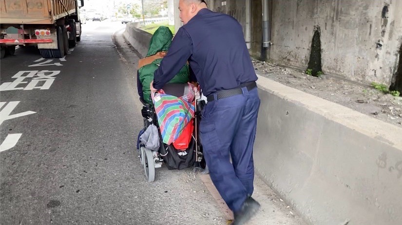 桃園市楊梅區一名43歲姜姓男子,因電動輪椅沒電無助待在路旁,路人發現後報警,警方到場得知男子電動輪椅沒電才困在此處,於是員警協助男子推著沒電的電動輪椅將男子送回家。