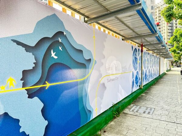桃園市政府今年2月初公布了「城市圍籬美學競圖」成果,也廣邀建築工地採納,目前於重劃區內已見多處新建案採用,吸引路過民眾的目光,建管處歡迎更多建設公司採用桃園在地學子、藝術家的創作作品,後續也將全面請市府新建的公共工程採用。