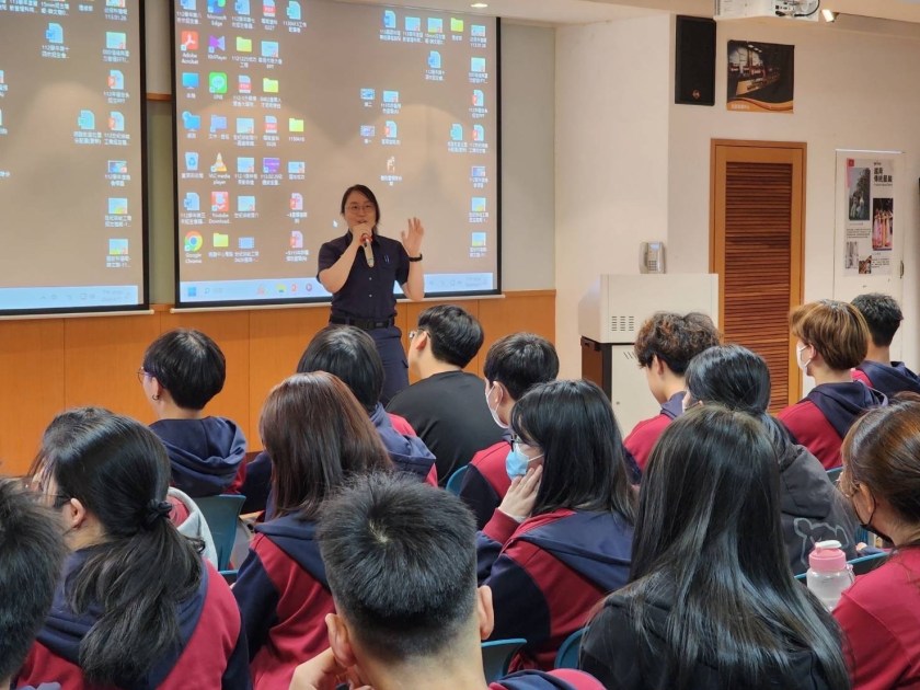 龜山分局昨日下午來到轄內歷史悠久的學府—世紀綠能工商,由第一線警員陳安如以實際案例的解說分析最為高發的5種網路詐欺態樣:「假網路拍賣」、「投資詐欺」、「ATM解除分期付款」、「假愛情交友」、發「假冒親友」,並針對學生較常遇到的假網拍、解除分期付款及假交友詐騙,列舉常見話術與手法搭配有獎徵答等活潑有趣的方式,讓學生參與討論,加深防詐意識,現場反應熱絡、互動也相當融洽。