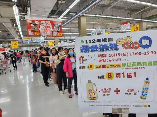 桃園市環保局在世界地球日,結合了桃園市綠色商店,包含愛買桃園店、大潤發中壢店、龍岡福利站共同辦理「2024地球日 淨零生活有讚」活動,推廣碳足跡認證的環保商品,透過參與「Tag讚抽好禮」以及「銅板特價購」活動,一起綠色消費、抽好禮,千萬別錯過。