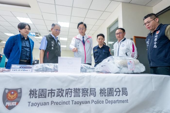張善政強調,毒品態樣不斷推陳出新,一般人從外包裝難以察覺,然而,長期使用毒品對個人身心健康將產生重大危害,市府絕不姑息任何涉毒案件,一旦掌握線索勢必追查到底,逐一中斷毒品來源。包括市府警察局長吳坤旭、桃園分局分局長吳明彥、桃園市警察之友會理事長吳嘉隆等均一同出席慰勞。