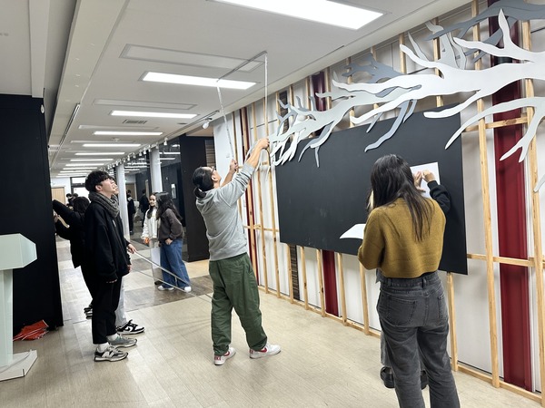 展覽籌備期間,設計師團隊發揮專業引領學生學習。符致康設計師指導學生進行圖面拆解、手繪空間設計及材料丈量,並協助搭建簡易模型。曾騰胥設計師則帶領學生探索「視覺」領域,引導他們如何進行延伸思考。莊効澄設計師則分享多個實務案例,激發學生的創意發想,並透過分組練習,引導他們從主題延伸至區域規劃,逐步勾勒出成果展的雛形。