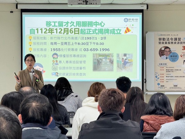 桃竹苗分署長賴家仁表示,為協助雇主加速申辦中階技術人力,勞動部也於112年12月成立「移工留才久用服務中心」透過設立單一服務窗口,提供雇主、資深移工或僑外生及仲介業者,包含櫃檯服務專線諮詢、專人專案追蹤管理、協調排除加速審核及官網資訊檢索查詢等四大服務,協助確認申請資格及文件是否完備,避免公文往返,並縮短審核時效,歡迎民眾多加利用。
