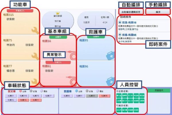 消防局為效率派遣救災車輛、人力、管理救災資源及提升人員安全,自108年起總計投入約1.43億,陸續建置各項運用物聯網技術的資通訊系統,其中包括解決消防人力及車輛任務分配的「戰力看板」、透過模組化智慧派遣的「119救災車組派遣系統」及掌握案件出勤狀態提供指揮調度的「RFID智慧車輛監控/車聯網管理系統」
