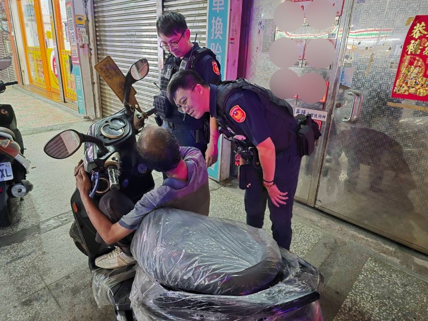 一度認為沒有老翁身影,但是眼尖的員警發現騎樓一台機車腳踏墊位子一個大異物有在動,上前查看仔細,赫然發現有位老翁正蜷縮在機車腳踏墊上休息,員警先關心詢問一眼認出就是走失的老翁,原來老翁迷路後在巷弄繞路行走回不了家而迷路了一天,身體非常疲憊,才會蜷縮在騎樓下機車踏墊休息。