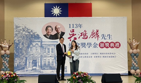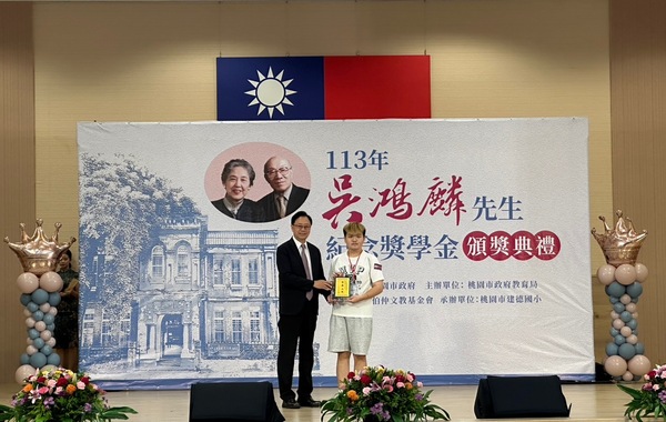他並親題「學無止境」四個字,由夫人戴美玉女士親書,勉勵今日獲獎的同學,領獎是一個榮耀,也是歷史使命,作為桃園子弟要繼續築夢踏實,讓桃園發光。每個孩子都是上天賜予的禮物,應有公平成長發展的機會,獎學金代表肯定與支持,更代表栽培未來的希望,也希望獲獎同學將來有能力回饋社會,形成善的循環。