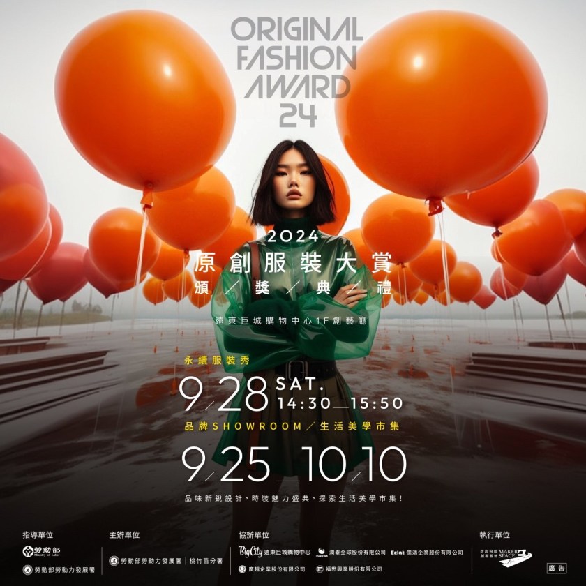 勞動部勞動力發展署桃竹苗分署「衣啟飛翔創客基地」將於9月28日(六)14:30,在新竹遠東巨城購物中心1樓創藝廳舉辦「2024原創服裝大賞頒獎典禮」,活動當天將集結14個新銳服裝品牌,以「ESG永續時尚」為主題盛大走秀,歡迎民眾到場觀看;自9月25日至10月10日,在巨城購物中心1樓還將設置「品牌Showroom」展售活動,提前為活動預熱暖身,歡迎對時尚及環保議題感興趣的朋友,可到場認識台灣優質新銳品牌及現場購買,詳細活動資訊可查詢「衣啟飛翔創客基地」臉書。