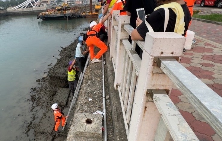 第八岸巡隊永安安檢所接獲永安消防分隊轉民眾通報,有1名男子於永安漁港南堤釣魚欲返回岸上無法自行攀爬上岸受困於堤防下方,海巡人員抵達現場後,偕同永安消防分隊使用救生裝備及延伸梯實施救援,成功將受困男子救援上岸。