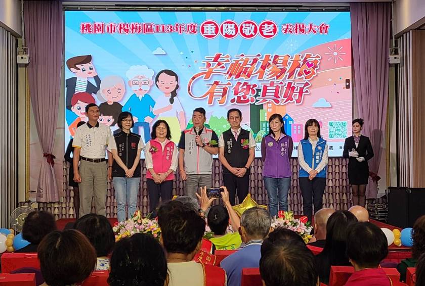 桃園市楊梅區公所於10月4日上午於幸福鹿時尚美食館舉辦「113年度重陽敬老表揚大會」,表揚各里遴選的長青及敬老楷模,今年共計88位受表揚者,其中分別有2位獲得桃園市表揚的長青楷模和2位市級表揚的敬老楷模,在里長及家屬陪同下,出席表揚大會,歡慶重陽佳節。