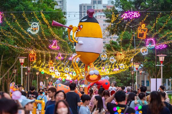 張市長指出,2024桃園萬聖城自今日起至11月3日於桃園藝文廣場熱鬧展開,活動為期9天,平日下午5時至晚間10時、假日中午12時至晚間10時,活動期間變裝秀、踩街等精彩節目不間斷,現場也有超過百攤的市集攤位,歡迎所有市民朋友天天報到,享受濃厚的萬聖節氣氛。