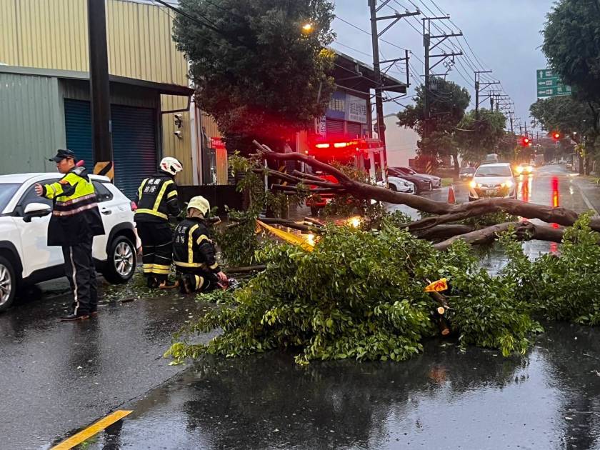 在龍潭區,高平派出所於31日早上接獲通報,高楊北路、工二路、龍源路等多處路段因大樹倒塌而交通中斷。警員陳長城、卓光煜等6名員警頂著強風大雨趕赴現場,並設置巡邏車警示燈以確保用路人安全。警員借來鋸子,先行將倒塌樹木切割移至路旁,暫時恢復單向通行,並待後續單位處理。經過的民眾紛紛豎起大拇指,感謝警方在颱風天仍堅守崗位,確保交通順暢。