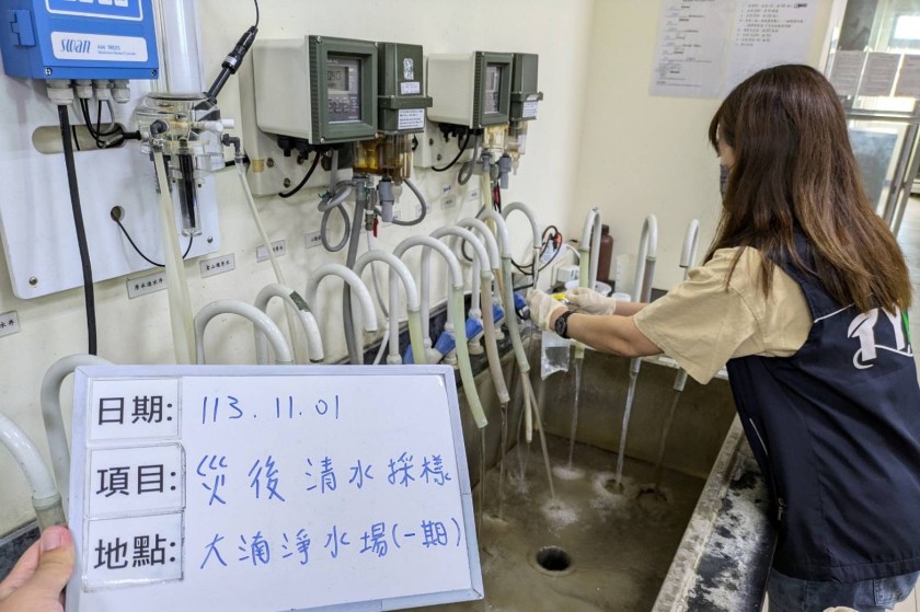 康芮颱風過境帶來強風豪雨,造成水源濁度升高。桃園市政府環保局為確保民眾飲用水安全,颱風過後立即前往查核供應桃園市飲用水的自來水淨水廠,經檢測濁度及餘氯等數值均符合標準,水質穩定可正常供水。