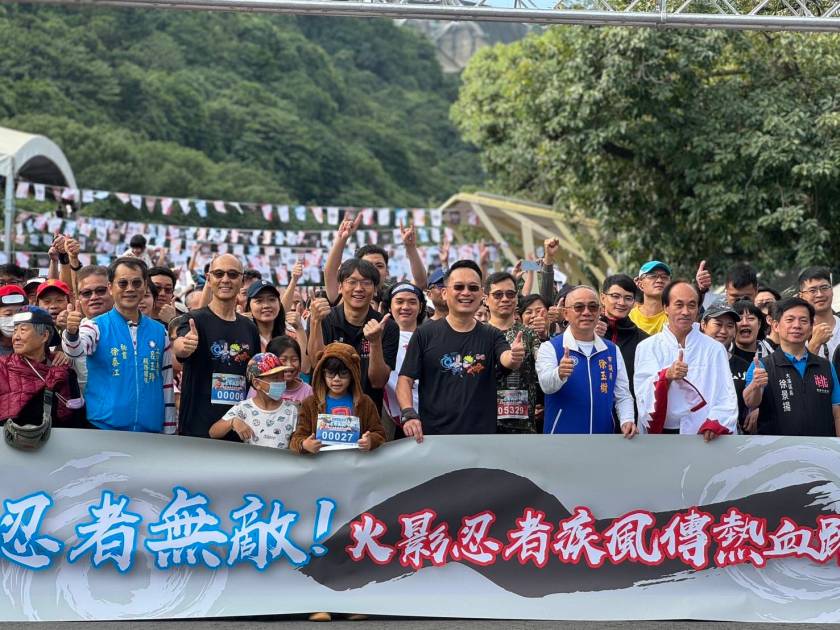 蘇副市長指出,今年也是石門水庫60周年,觀旅局別出心裁規劃「火影忍者疾風傳熱血路跑」活動,希望藉由動漫IP吸引小朋友主動運動,並且鼓勵祖孫、全家參與,今天有100組全家總動員一起來親身體驗,感受桃園的美,使石門水庫的觀光風氣更興盛。
