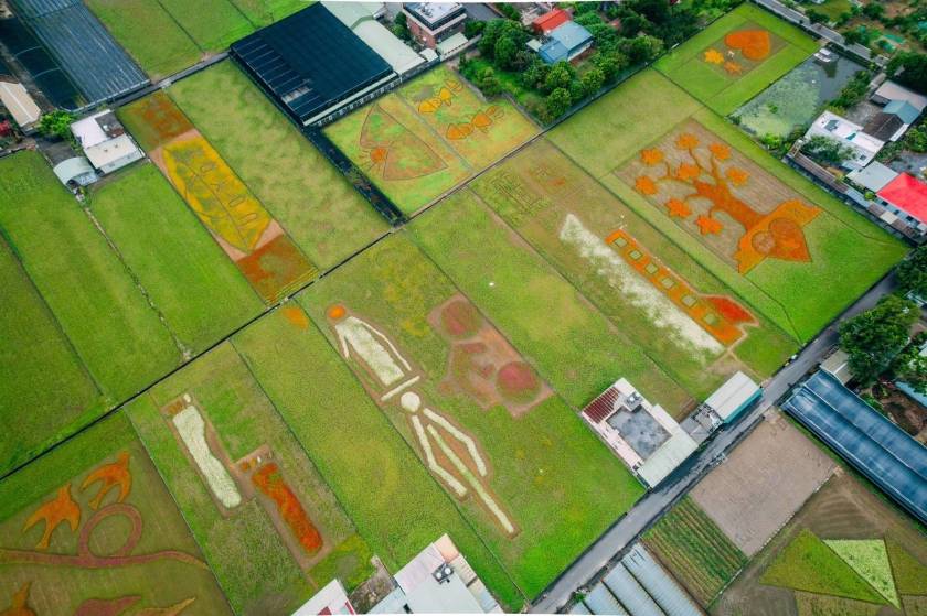 2024大溪水岸花卉農遊「花彩盛艷」進入倒數計時,每處花田開放程度不同,平均大約花開3、4成左右,接下來還會陸續開放,花海圖騰也會愈來愈明顯。