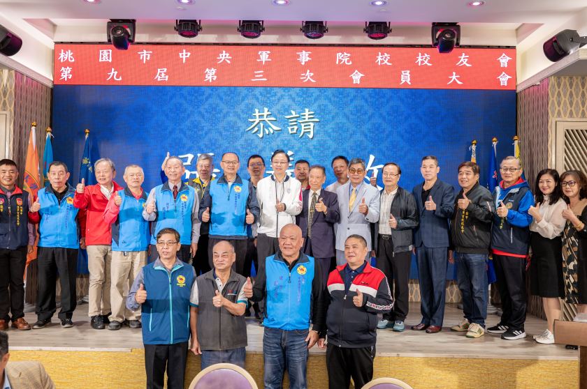 桃園市長張善政21日中午前往中壢區,出席「桃園市中央軍事院校校友會會員大會」。張市長表示,桃園市中央軍事院校校友會會員們擁有革命般的情誼,感謝第九屆理事長羅吉源帶領會員投入桃園各項公益活動,積極照顧弱勢族群,並期勉新任理事長李東成持續引領會員,發揮其影響力,協力推動桃園更加進步、更加溫暖。
