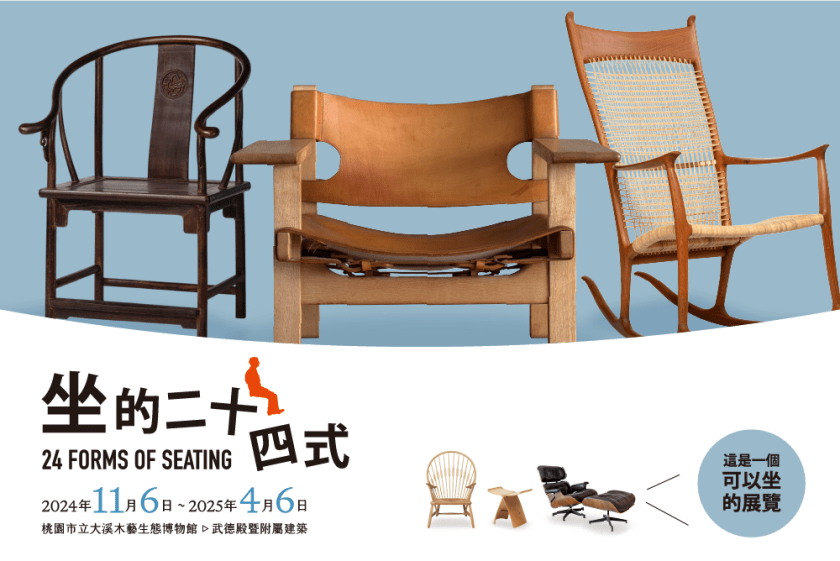 桃園市立大溪木藝生態博物館(下稱木博館)以「武德殿」為基地,結合地方文化,推動傳統木藝與設計美學的交融。即日起至明年(114年) 4月6日止,「好木成森系列展覽:坐的二十四式」特展以多樣的形式,展出28件經典椅與6件漢體坐具,帶領觀眾深入探索木工藝與家具設計的豐富表現。