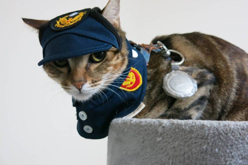 今年聖誕節前夕,同仁們突發奇想,為乖乖量身訂製了一套警察制服。穿上制服的乖乖,瞬間化身為「小警察」,萌態十足。牠似乎也知道這套衣服的特別之處,穿著制服的牠,格外活潑,在派出所內來回穿梭,像是在「巡邏」。