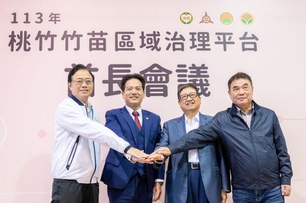 新竹縣長楊文科表示,桃竹竹苗區域治理平台成立以來,四縣市密切合作,共同推動教育、交通、環保等議題,四縣市首長不分黨派,展現合作典範,期盼透過四縣市集體努力,為鄉親打造更好的生活環境。