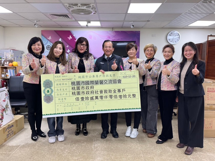 桃園市國際蘭馨交流協會(下稱蘭馨協會)創會理事長暨市議員舒翠玲、現任理事長陳文慧、秘書長王小琦暨理監事們,偕同會友共同捐助急難救助金,20日下午1時於桃園市政府社會局舉辦捐贈儀式,由陳寶民局長代表致贈感謝牌表彰善舉。