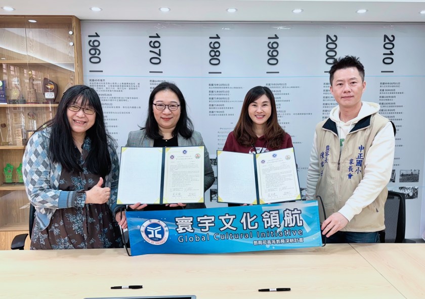 元智寰宇團隊黃郁蘭教授(右二)與中正國小簽署合作