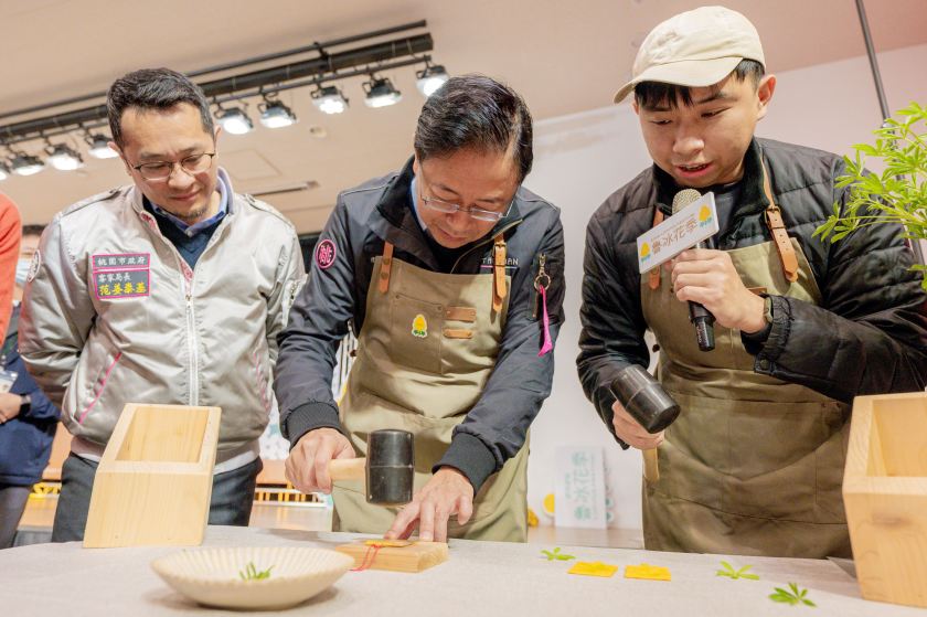 張善政市長在市府客家局長范姜泰基、勞動局長李賢祥、農業局副局長黃玉詩、龍潭區長鄧昱綵、桃園區副區長邱創正陪同中出席啟動記者會,包括市議員徐玉樹、農業部農村發展及水土保持署台北分署秘書郭炳榮、桃園市客家文化基金會董事王介禧、黃玉琴、邱晨睿、監察人李建榮、桃園市三水社區發展協會理事長游芳玲、桃園市高原社區發展協會理事長張善進、桃園市大北坑農村發展協會理事長陳嘉慶等均一同出席。