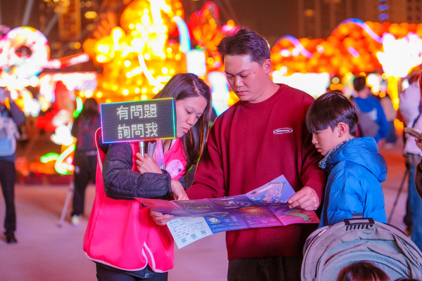 2025台灣燈會在桃園距離閉幕倒數只剩3天,上週末更創下單日參觀逾220萬人次的紀錄,本屆燈會除了結合傳統花燈、科技和藝術的燈藝作品外,假日也安排了多元的表演節目,為迎接來自各地的遊客,召募近4,000人次志工於兩大燈區,即時提供賞燈路線導引、輪椅娃娃車借用及燈區各項服務資訊。