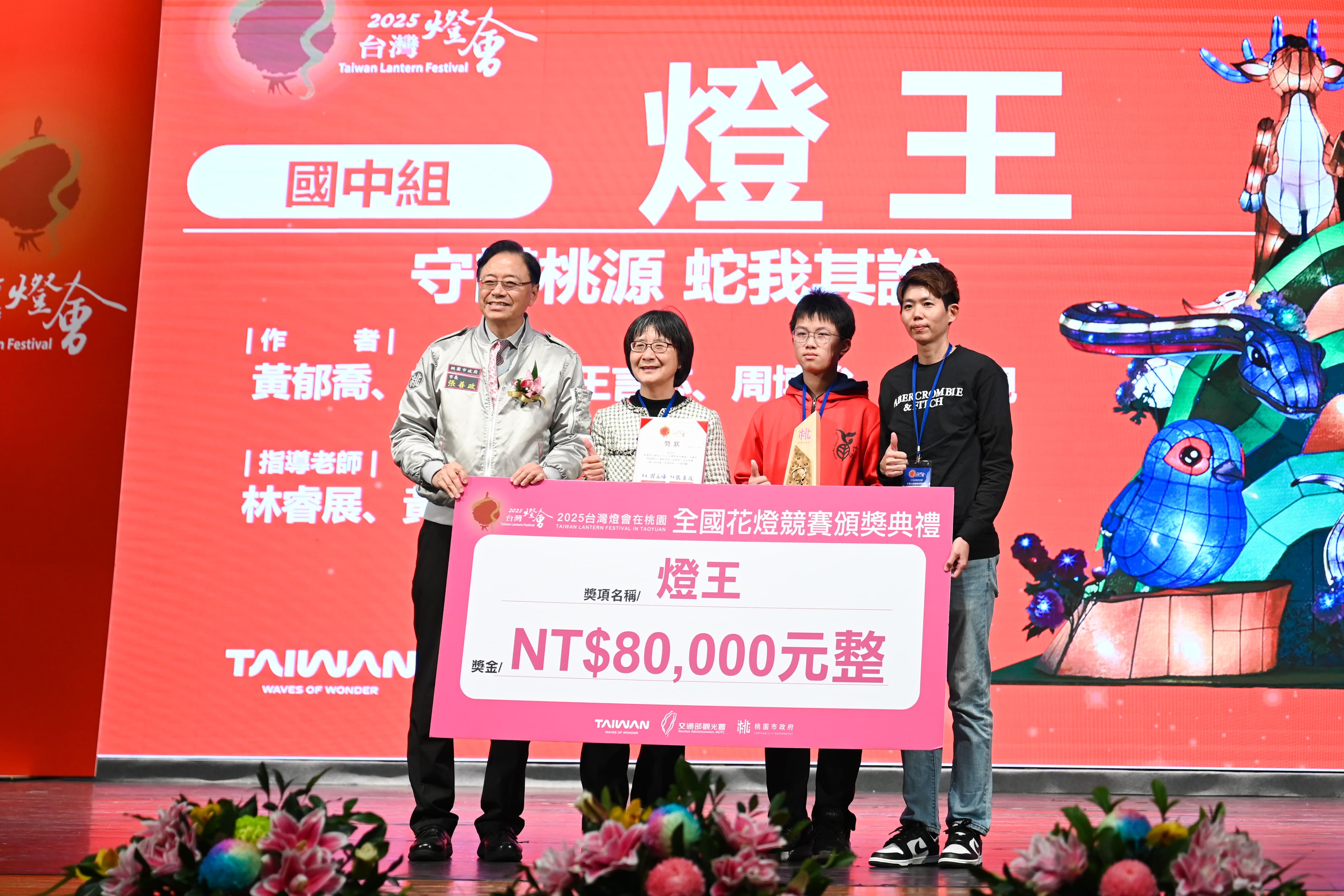 張市長指出,2025台灣燈會在桃園因為有各界的投入與支持,使許多民眾流連忘返、驚呼連連,感謝交通部觀光署的支持及協助,透過地方及中央密切合作,才能成功打造本次精彩奪目的台灣燈會。