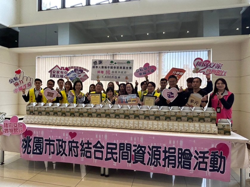 國泰人壽攜手國泰慈善基金會捐贈1,500斤白米關懷桃園市弱勢家戶,於114年2月26日下午於桃園市安家實物銀行南區總行辦理捐贈暨裝箱活動儀式,由桃園市政府社會局陳茹文副局長致贈感謝牌表彰善舉。