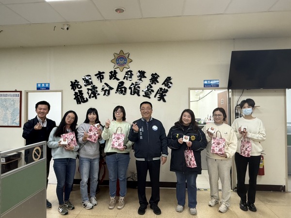 🔹 龍潭警分局——分局長鄭文銘特別準備舒緩肌膚面膜與法式甜點「達克瓦茲」,親手贈予女性同仁及協勤志工,展現警察大家長的體貼與關懷。他勉勵大家在專業執法之外,也要持續推動性別平權,營造更友善的職場環境。