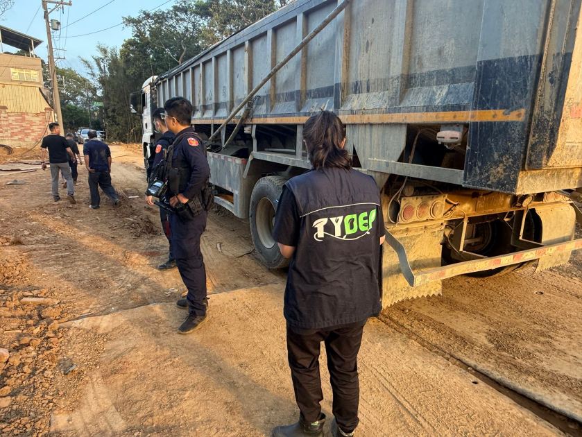 桃園市政府27日運用科技執法,建管處與警察局、環保局合作在平鎮區東龍街成功攔截正在傾倒廢土的現行犯,阻止營建土方遭到不法棄置,展現市府對非法棄土「零容忍」的強硬態度。