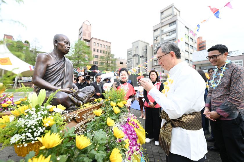 此外,現場特別安排「手配花環」傳統習俗,讓與會民眾透過手環傳遞祝福與思念,共同凝聚正向能量與文化情誼。包括市議員張碩芳、內政部移民署桃園市服務站主任黃英貴、市府婦幼局長杜慈容、社會局長陳寶民、勞動局副局長周賢平、市府顧問暨桃園市新住民聯合服務中心執行長李紹偉、桃園區長許敏松、財團法人桃園市觀光發展基金會副執行長陳信守、泰國貿易經濟辦事處助理代表邱歐姆等均一同出席。