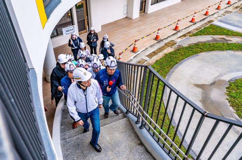 張善政指出,許多年輕家庭選擇在桃園落腳,使得桃園市學齡人口穩定增加,成為全臺少數需擴建校舍與托育設施的城市,市府將持續盤點可用空間,加速推動托育建設,提升整體育兒環境。今日工程視察結果,建設進度相當順利,預估今年6月底前完工,9月新生可順利入學,紓解大園地區幼兒園不足之情形,歡迎家中有適齡幼兒的家長踴躍報名,讓孩子就近入學,在安全舒適的空間中快樂成長。