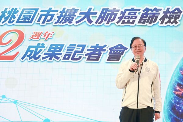 桃園市長張善政23日下午於市府綜合會議廳,出席「桃園市擴大肺癌篩檢2週年成果記者會」。張市長表示,至今(114)年2月底市府推動免費低劑量電腦斷層(LDCT)肺癌篩檢已滿兩週年,這兩年在各醫療院所夥伴的合作下,已完成逾4萬人次的篩檢,並發現200多例早期肺癌,幫助許多市民及早發現,把握寶貴的黃金治療時間。張市長也期許繼續攜手各醫療院所,一同守護市民健康。