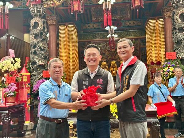 桃園市副市長蘇俊賓1日上午前往楊梅區,出席「頭重溪三元宮主任委員交接暨管監委員就職典禮」。蘇副市長表示,今年適逢三元宮建宮200週年,這不僅是一項具有歷史意義的信仰里程碑,更是地方宗教文化的重要盛事。他向原任主任委員莊盛火及其團隊表達由衷感謝,肯定其多年來致力於爭取資源與推動信仰傳承,為廟務發展奠定了堅實基礎。同時,他祝賀新任主任委員吳錦鴻(阿鴻主委)接任,期許其承擔起推進宮務、發揚信仰的使命,持續為地方注入新活力。