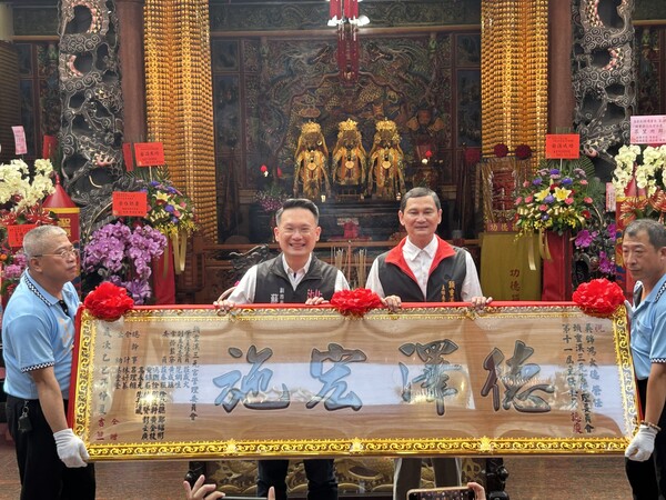 在今日典禮中,蘇副市長擔任監交人,主持印信交接儀式,與宮廟一同頒贈新任主委「德澤宏施」匾額,肯定三元宮不僅為地方重要的宗教信仰據點,更是長年投入社會公益、積極關懷弱勢的重要團體,展現宗教團體的社會責任與正面能量。