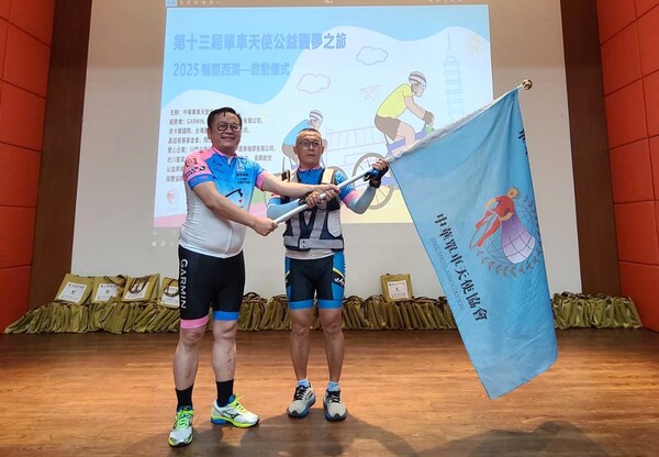 第十三屆單車天使公益圓夢之旅再啟征程,組委會王盟仁董事長授旗。
